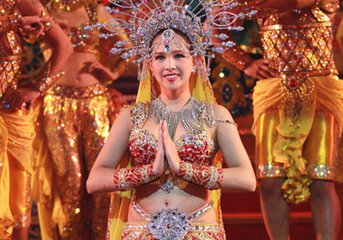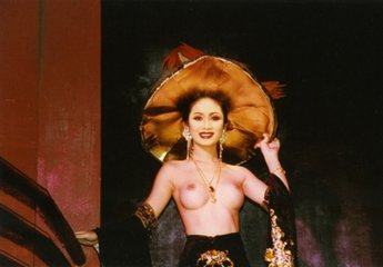 接下来的,是泰国人妖的中国歌舞表演,只见舞台上,彩蝶双飞的大型布景逐渐显现,那熟悉而凄美的《梁祝》旋律,从舞台的四面轻轻飘出,20 几个楚楚动人的“少女”,款款摆动着柔细的腰肢,呈蝴蝶翻飞之状,中间领舞的“祝英台”,身披长长的白纱,在追逐着英俊的“梁山伯”,“她们俩”那合着音乐节拍快慢的旋舞,凸显出了远年梁祝的悲情故事,直惹得满场的中国观众,把那人生的情感,全都倾注了进去。