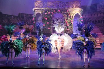 在一阵轻妙的旋律声中,从舞台两侧,缓缓而出30几个走着碎步的宫廷“裸女”,“她们”合着音乐的节奏,从虹彩缤纷的光幻之下,舞旋着雪白精光的大腿,像一条条由曲线柔和而成水汪汪的花,而那不停抖颤的玉臂,恰是花瓣里的花蕊,衬托出花蕊之上一张张艳丽动人的笑脸。