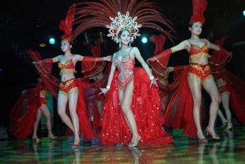 尤其是那人妖中的“舞后”和“歌后”,她们的周围都排起了照相的长龙,在那闪闪烁烁的镁光灯里,更映出了那“舞后”和“歌后”惊人的倩丽,“她们”与那白日里我们所见到的芭堤雅海滩上,在和高大肥胖白种男人调情的娇小丑陋、褐如烧鸭的泰国女孩,形成了巨大的反差,因此,那每一次和人妖合影的区区40泰铢的开销,大家就都非常乐意掏了。