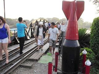 在那大桥的东部,如今建有一个简朴的纪念馆,那全由竹苇编筑而成的长条型窝棚,就是当年盟军战俘赖以栖身的地方,那里面陈列着许多当年战俘和劳工们使用过的简陋劳动工具、破烂的衣物和各种生活器皿。