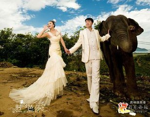 在普吉岛上与大象合影,自是世界青年男女婚纱照绝趣的追求