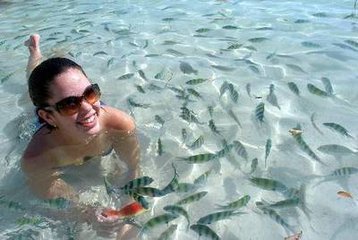 在普吉岛海里的鱼儿按摩下,你看她笑得有多艳