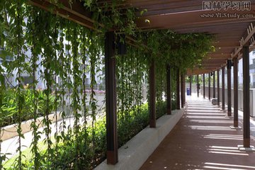泳池边,一条条的小径,就蜿蜒在花木的清幽之中,行到此处,我们感到,人是在曲曲折折里绕行,而花却在腰际间缭绕,那样一种情致,那样一种清香,就仿佛是那芬芳的液体,在向四处流溢似的,它让人渐渐减弱了些许的疲劳,增添了几分的醉意。
