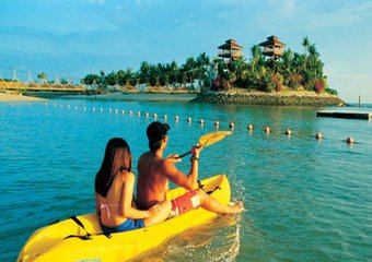 情侣划着小舟到圣淘沙寻梦去