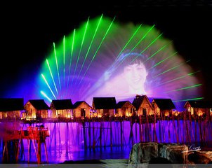 圣淘沙岛上的音乐喷泉绚烂多彩