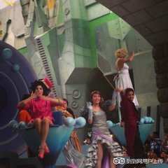 突然间,音乐婉转而下,水柱也随之袅娜柔情起来,那就仿佛是一群水中的精灵正在嬉戏,又如同一群白衣美女正在浣纱,它把我们这些游客,一下子带入了一个光彩迷幻的仙境,在渐近渐清的中国传统音乐里,我们看见喷池两边激光灯幕中,一对农家娃正在拱手作揖,轻柔的水柱在伴着音乐翩翩起舞,在激光彩灯的变幻照耀下,烘托出了华夏民族人寿年丰,新春祥和的喜庆氛围,然后音乐嘎然而止。