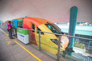 你看,圣淘沙岛上的小火车都是彩色的