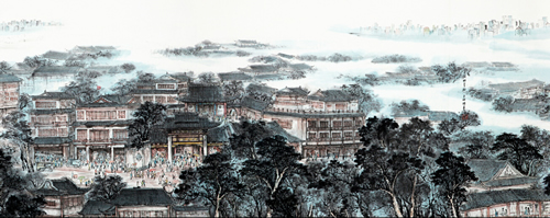 其地灵人杰矣,陆逊创夷陵防御之盛典,二陆冠文学太康之精英,晋元率八百壮士之喋血,秋白偈夕阳明灭之乱山。东西文化,由水而融之,或成城厢旧肆之逸,或窜血雨狼烟之灾,或舞鸳鸯蝴蝶之恋,或洒赤都血溅之彩。