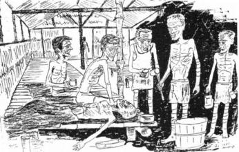 还有一个叫林金山的新加坡华人,写下了他于1944年2月所见的恐怖经历。他说:“我曾被拘留在樟宜和欧恩礼坡,日本人用绳子抽打我,用脚踢我,我昏了过去,直到有人给我脸上泼水,我才苏醒过来。我发现自己被关在一间长6米,宽4米的牢房里,那里大约关有30多个男女。我们喝的是厕所里的水,吃的是旧煤油桶装的烂菜,日本人对华人特别残酷。一天晚上,我看见日本宪兵把一个人高马大的潮州小伙子双手反绑,赤裸裸地吊在天花板上,绳子绕上房梁,只让他的脚稍微离开地面。”