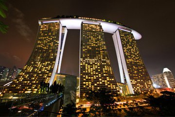 现代建筑艺术造型,并上蔚蓝海水的反照,新加坡让人享受其中
