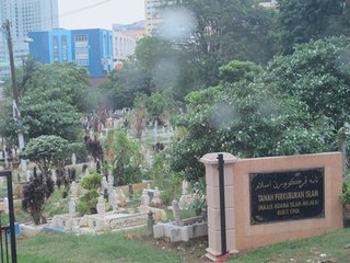 马六甲市三宝山上的墓碑,像军团队阵崛立,它们齐齐朝向北方
