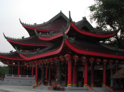 看着公主如此的天姿国色,曼苏尔左瞧右瞧,竟舍不得收眼,由此,他将公主作为自已的至爱,请她按照此地的风俗,皈依伊斯兰教,并迎娶入宫为王妇,他还专门为汉丽宝公主及她从中国带来的五百名随从,选出当地风水最好、地势最高的山丘,专门修建了宫殿,并仿中国建筑形式,飞檐峭壁,红墙绿瓦,彩龙戏珠,作为供他们居住和延繁子孙的地方,这就是马来人称之为的“中国山”。