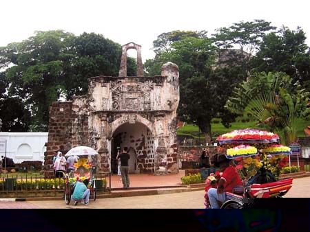 这马六甲圣保罗山下的圣地亚哥城堡,与现代旅游花车互映,它还原了历史的本来面目