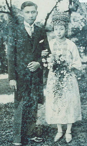 当年大马华人富豪田贵泉娶妻的婚纱照,此为巴巴家庭婚礼示人的标准装