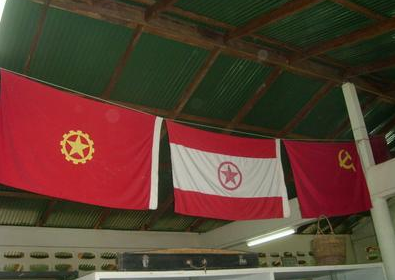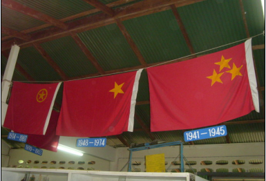 马共当年的党旗、地下党旗、青年团旗,它分别代表着抗日、抗英、抗马