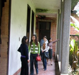 再上一层,映入眼帘新的洞穴,让我们眼睛一亮,只见那洞的周遭,松篁清幽,桧柏傲丽,紫气升腾,啼鸟音闲,俨然一幅天堂的画图。由兴都教徒带到神前伺养的信鸽,在洞顶上飞来翔去;放生的雄鸡,在庙前自在地觅食;供奉的牯牛,在大摇大摆地闲逛;野生的猴子,在向游客伸爪讨食。兴都教徒们坚信,这自由的放生,是在回报神明的庇佑和浓重的眷顾之恩。