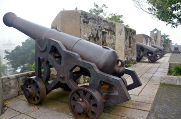 早年守卫澳门的钢铁巨炮,如今静静地沉睡,成了令旅人沉思默想的历史文物