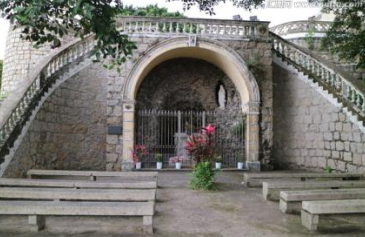 如此完美的建筑,竟不得“善终”,在万象复杂的人世间,这毕竟是一大憾事。人类的智慧,于修补历史遗憾事上,往往会有超凡而不能脱俗的表现,对大三巴的火劫,从此也就有了一个和教义相切、较为崇高的故事流传:即教堂着火的关键时刻,正值百年一遇的台风施暴,席卷的海涛漫袭着澳门,沿海的低洼地区,瞬时汪洋一片。居民们扶老携幼,仓促逃生,在天昏地暗的绝地里,幸赖教堂的大火指引,人们因此就着火光逃向了高处,得以躲过那生死的劫难……