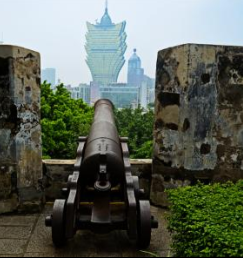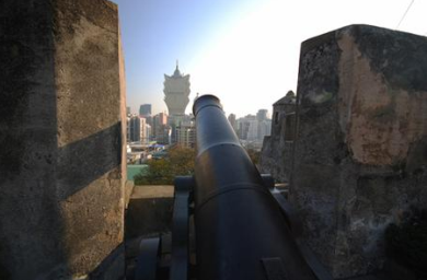 这样的巨炮直指着澳门的大海,它是一代殖民化的象征,但如今它却成了旅游景观也