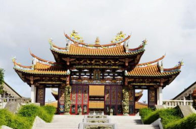 红壁金柱黄瓦,飞檐翘角斗拱,中华典型古老建筑,在澳门妈祖庙上表现无遗