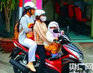 摩托是越南海防市主要交通工具,像这样的一家,在街头比比皆是