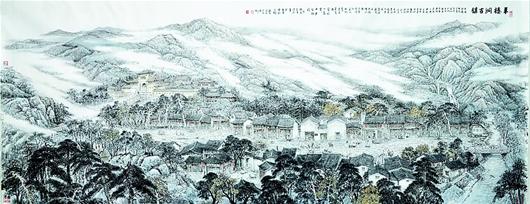 像这样即将消失或没落的景观,在630米的国画长卷上共复原了200余处,以古镇、古战场居多,每一处都有据可查。