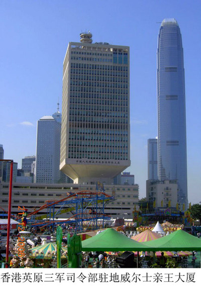 那离白府不远的中环,往昔的日常,总是静卧着一座军营,它在默默中,却是虎视耽耽的,英军港地的三军司令部,则驻在那里。军营内的威尔士亲王大厦,它特别设计的上大下小形状,远远望去,像一只竖立的巨大手榴弹,在高高地威慑着,让人一到那里,就会立即降低腰身,匆匆而过。那颇为闻名的英军海军基地,与中环的军营就毗连着,添马舰的巨炮,则常年高高扬起,它不仅护卫着周遭的英军驻港部队总部机关所在地爱丁堡广场,经济命脉汇丰银行,而且还包括那个连通着白府高度秘密的通道……