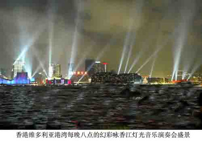 这是一台没有演员和乐队表演的、名副其实特大型声光电多媒体的“灯光舞蹈音乐汇演”,它竟把维多利亚港两岸沉静、硬梆、高大的钢筋水泥建筑群,以及这闪着金光银片的港湾海空之间,幻变得这般地如诗如画!一种现代科技演变出的景幻,让我们顿然,顿然之间感受到了南国明珠的珍稀瑰丽和重拾它的无限幸福、荣光与豪气。