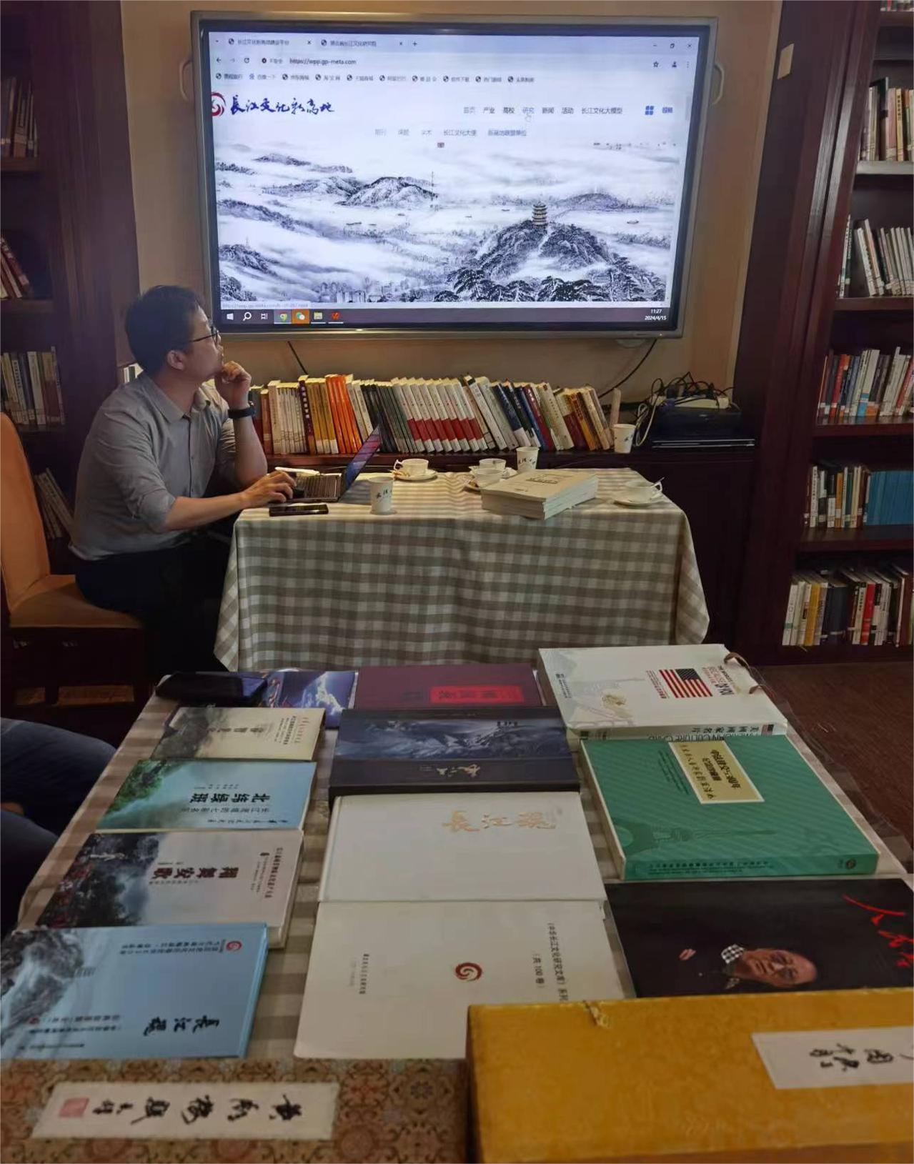 座谈会上,刘院长介绍了湖北省长江文化研究院的悠久发展历史及与武汉大学深厚的学术合作渊源,详细阐述了《中华长江文化大系》《长江魂:中华长江人文山水国画长卷》等鸿篇巨制的编制由来、曲折历程、学术价值、面世后的轰动效果及对长江文化传承与推广的重要意义等。并现场展示《鹦鹉洲国画长卷》《黄鹤楼赋》等书画成果,播放《长江魂:中华长江人文山水国画》赏析等视频,让与会者深刻感受到长江文化的博大精深和艺术魅力。尤其是《长江魂:中华长江自然山水数字画长卷》(动态型),超逼真的写实风格,细腻灵动,栩栩如生,色彩绚丽,意境深邃,令与会者赞叹不已。