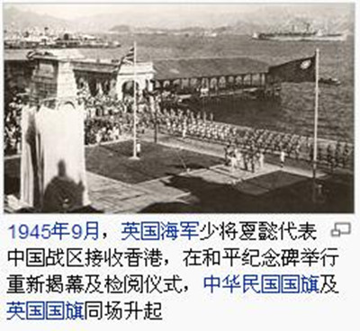 1945年8月29日,英国海军少将夏悫正式接受了停战后的驻港日军,在尚没有接到日本天皇的任何向谁投降旨意情况下的稀里糊涂的投降,并于中环皇后像广场的抗战胜利纪念碑前举行隆重的接管香港仪式,然后于9月1日颁布了《军政府统治公告》,正式宣布成立军政府,由它执行全面的管制政策。从此以后,9月1日,就这样在不明不白的情况下,被定为了香港的重光纪念日。