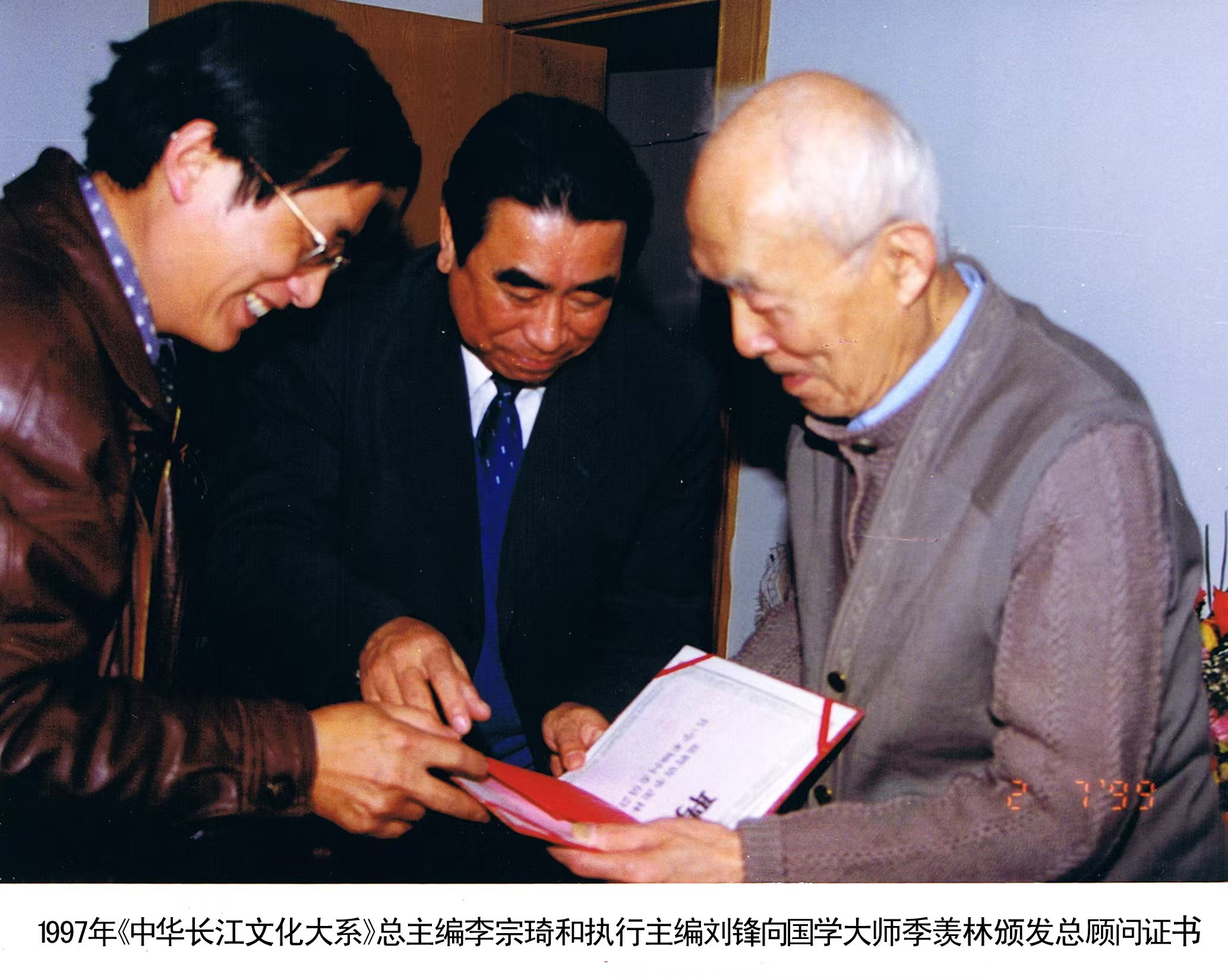 刘锋与著名学者季羡林、李学勤、任继愈、程裕祯等国学大师接触,寻求他们的支持和参与。这些学界泰斗对于挖掘和弘扬长江文化的重要价值表示了高度认同,并鼓励刘锋将这一宏伟计划付诸实践。在他们的指导和帮助下,刘锋联合了两百多所高校及研究机构的八百多位专家教授,开始了策划《中华长江文化大系(一)》的编纂工作。