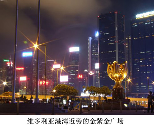 是啊,金紫荆花,这中华港人的精神象征,花色紫红,形如蝴蝶,景色奇特,艳丽可爱,被称作“满条红”,如今又演化为金色的花儿,它让我在雄浑的国歌声中,想起了与此相连的血泪岁月。