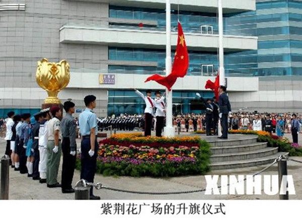 望着金紫荆广场上空飘扬的国旗和区旗,再看看那朵盛开在广场上空的金紫荆花,香港回归前后的一幕幕不平凡的岁月,又翻腾在脑际,我的眼前,开始升起邓小平的身影,这与香港回归剪不断的史痕,它让我心情漾动,邓小平,又一个时代的伟人,正是他那非凡的胆略和决策,才使金紫荆花的盛开梦想成真,才使又一个炎黄崭新时代的发生更张。