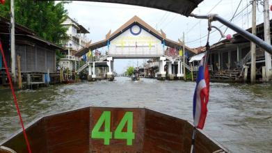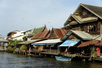 在这里,你随便搭上一条小舟,任意地驰入一条河里(或运河),便可见到建在河边木桩和水泥桩上的密密匝匝的泰式高脚屋,或轻轻浮在水面上的小巧浮屋。
