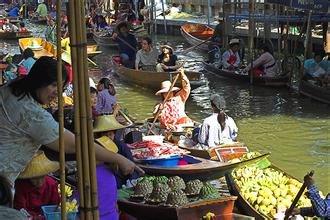 后来经打听,它不仅是,而且这市场还很有点来历呢!它是从1769年的泰国吞武里王朝开始的,到曼谷王朝拉玛三世的时候,这里水上浮屋的规模就已达到了7万栋之多了,并拥有了水上人家35万人。